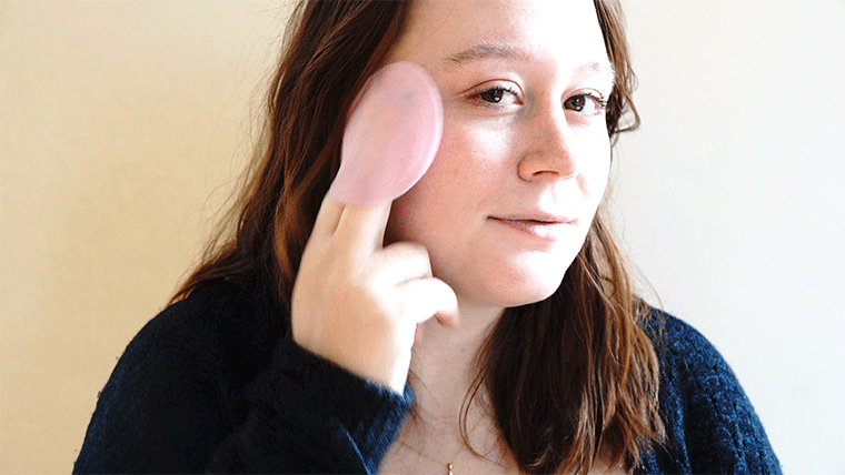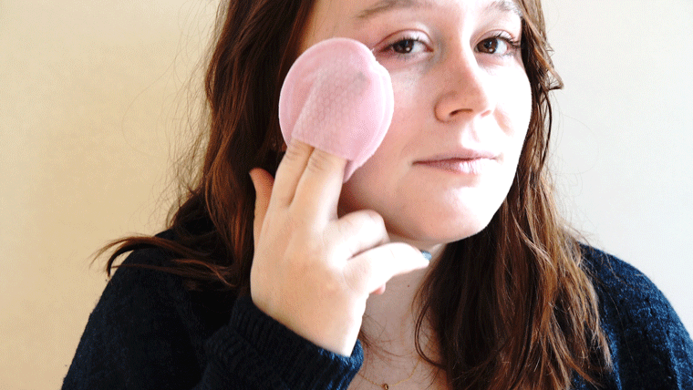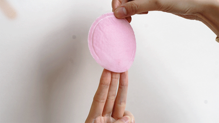 Bước 3: Đổi chiều miếng pad, sử dụng mặt có những miếng bông tròn nổi để massaage mặt thêm 1 lần nữa.