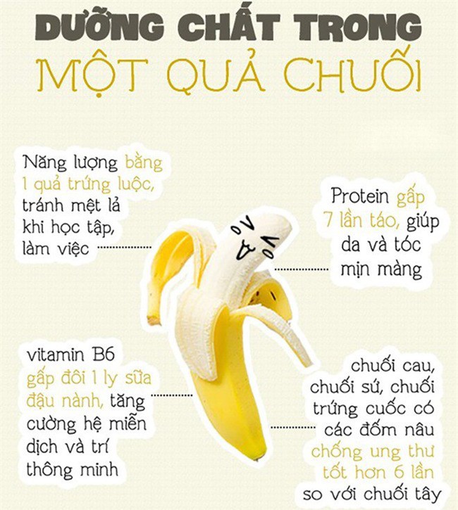 Chuối là một loại thực phẩm giàu chất xơ, vitamin B6, vitamin C, ít protein và chất béo không chỉ tốt cho sức khỏe tim mạch mà còn tốt cho hệ tiêu hóa và bổ sung lượng lớn dưỡng chất cho cơ thể.
