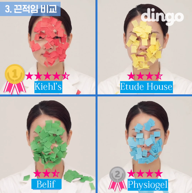 So sánh cả 4 loại thì kem dưỡng của Kiehl’s mỏng nhẹ, thấm nhanh và ít bám dính hơn cả. Tiếp theo sau đó là kem dưỡng của Physiogel, Etude House và Belif.