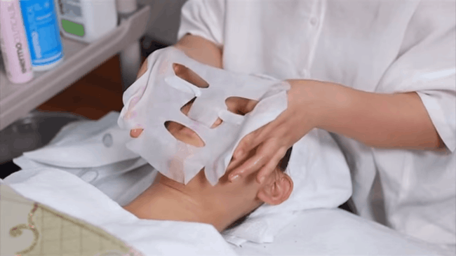 Sau khi sử dụng máy di kĩ dung dịch CC Cover trên da mặt - thông thường thời gian di khoảng 30 phút, các chuyên viên sẽ lau lớp CC Cover rồi đắp mặt nạ giúp khoá ẩm cho làn da.