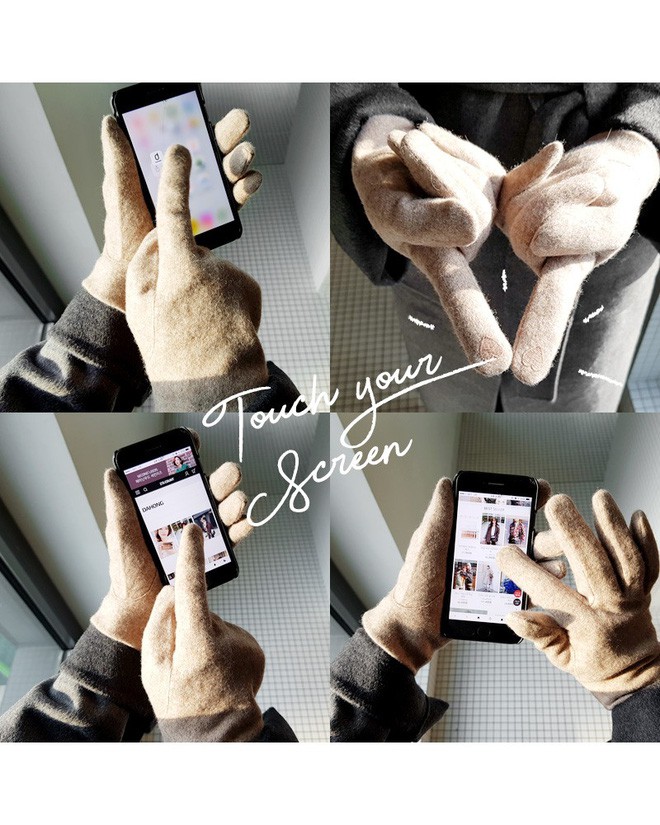 Những chiếc găng tay ấm ám giờ được thiết kế thêm với phần ngón trỏ cảm ứng nhiệt để các nàng có thể dễ dàng sử dụng điện thoại.