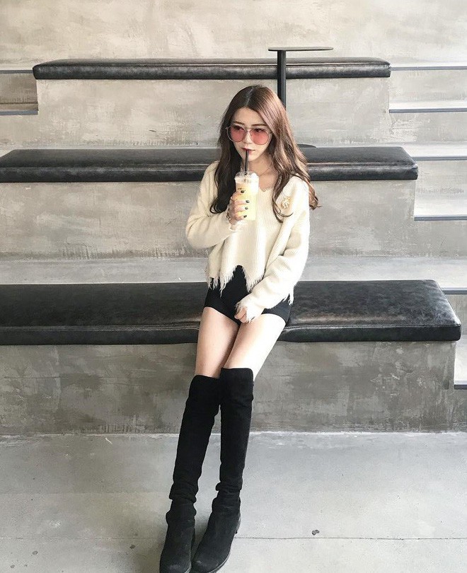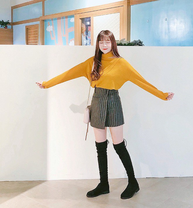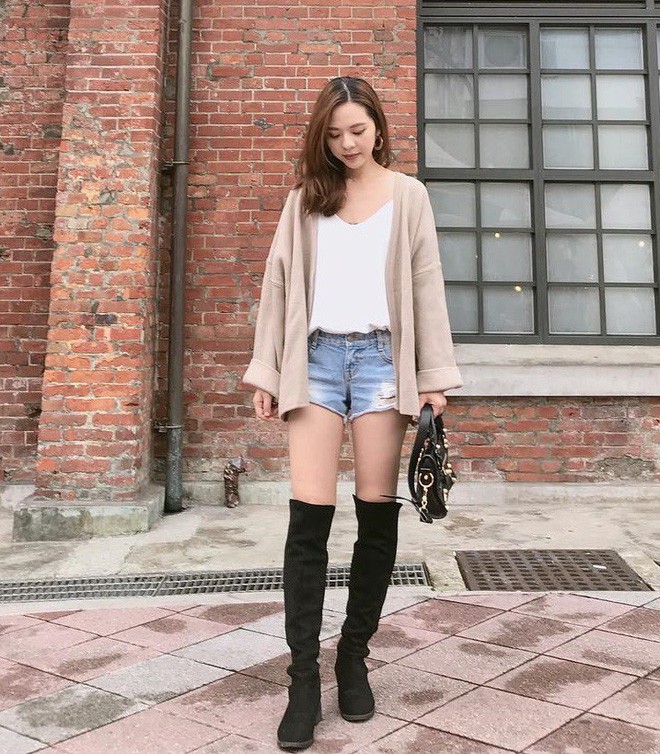 Bên cạnh công thức mix với chân váy ngắn, thì bạn cũng có thể mix boots cao cổ với các loại quần shorts. Công thức này sẽ có phần phá cách, trendy nên sẽ phù hợp với những cô nàng trẻ trung, cá tính. Dạo 1 vòng trên Instagram, bạn sẽ thấy các tín đồ thời trang thường mix boots cao cổ với áo len oversized và quần short dáng ôm, tạo nên tổng thể vừa tôn dáng mà vẫn điệu đà, trendy. Nếu muốn chỉn chu hơn thì bạn có thể chọn những mẫu áo dệt kim, áo len mỏng để sơ vin cùng quần shorts.