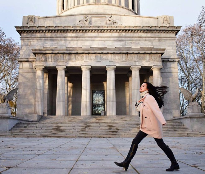 Ngay cả áo măng tô, Ngọc Hân cũng chọn tông xanh rêu cá tính chứ không điệu đà với đủ kiểu sắc màu sặc sỡ.