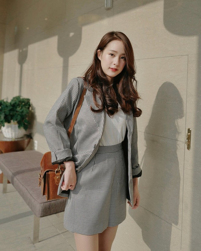 Diện một set đồ matchy cả chân váy và áo blazer, cô nàng lại ghi điểm với style thanh lịch trẻ trung, không kém phần dễ thương.