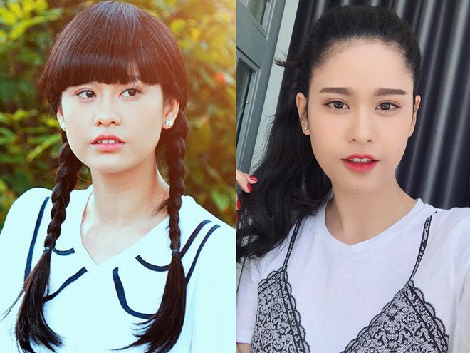 Thế nhưng sau dần, gương mặt của Trương Quỳnh Anh ngày càng thon gọn với khuôn cằm dài và V-line hơn chứ không ngắn và tròn như trước (ảnh trái).