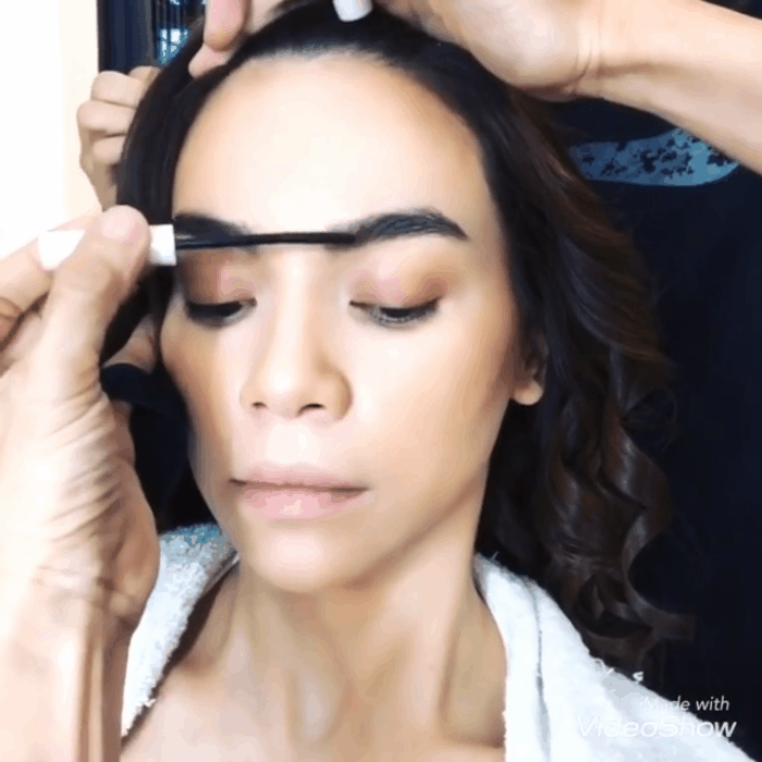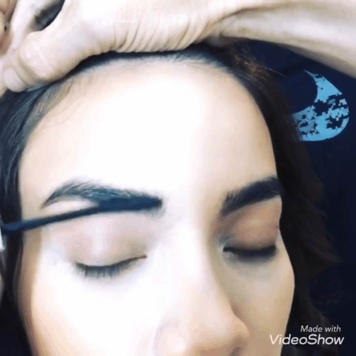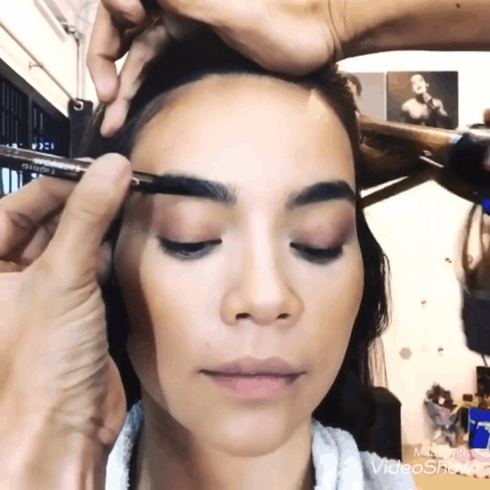 Đầu tiên là tạo khuôn lông mày, chuyên gia make up cẩn thận gẩy từng sợi mày để cả khuôn đậm đều nhau và đảm bảo từng sợi lên màu tự nhiên nhất.
