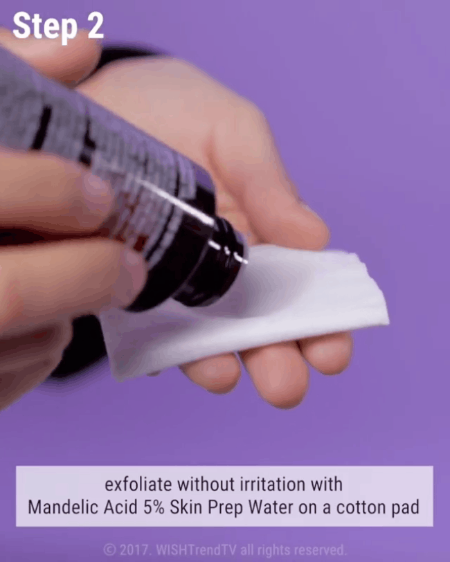 Bước 2: Lau qua mặt với dung dịch AHA nồng độ thấp. Bước này giúp làm sạch những vùng da chết sần sùi, thô ráp.