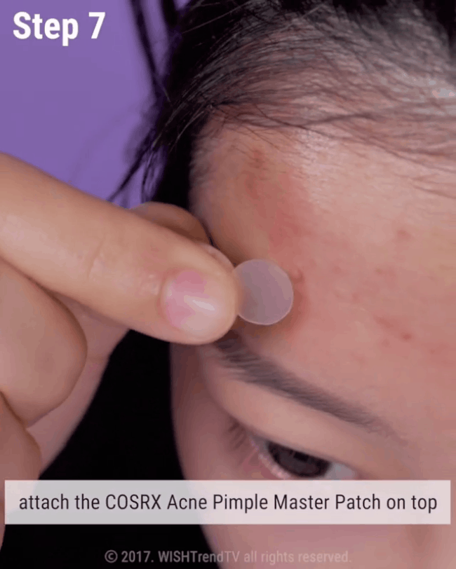 Bước 7: Sử dụng miếng dán mụn chuyên dụng giúp hút sạch nhân mụn còn sót lại bên trong, vào tạo môi trường cho da mau lành vết thương, hạn chế hình thành vết thâm