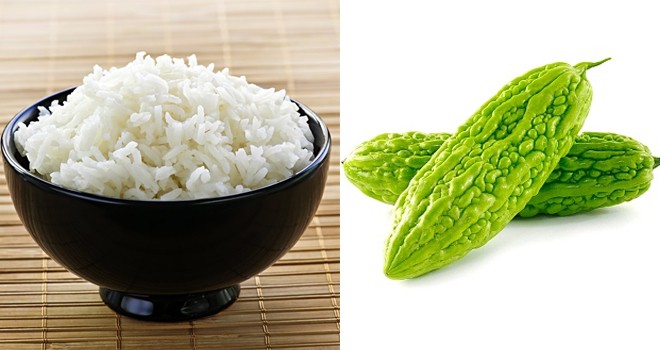 Nguyên liệu: 1 quả mướp đắng (khổ qua); 100g cơm nguội; 20g thịt lợn; Ít hạt mè trắng