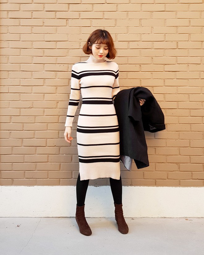 Nếu bạn tự tin với vóc dáng của mình thì đừng ngại ngừng diện những thiết kế váy len dáng body ôm sát. Điểm đặc biệt của chất liệu len là sự co giãn tốt, ôm vừa vặn cơ thể cũng giúp giữ ấm tốt hơn. Diện váy len dáng body vào ngày lạnh hơn bạn còn dễ dàng kết hợp cùng áo khoác từ dáng dài, dáng ngắn, tới dáng lửng.