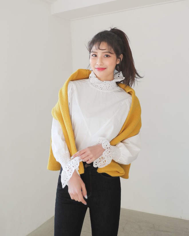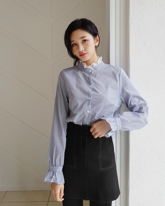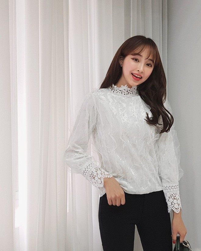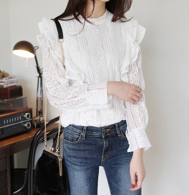 Ngoài mẫu áo tay loe hay áo bèo nhún, thì những mẫu áo điểm xuyết thêm chi tiết ren cách điệu cũng là mẫu áo được nhiều cô nàng tìm mua trong năm nay. Chi tiết ren có thể chỉ là 1 điểm nhấn nhá phá cách ở cổ hay tay áo, mà cũng có thể là những mẫu áo ren mềm mại, điệu đà. Chính vì vậy dù đều ứng dụng chi tiết ren nhưng mẫu áo này có thể hợp lòng được cả những cô nàng yểu điệu, nhẹ nhàng lẫn những quý cô cá tính, thời thượng.