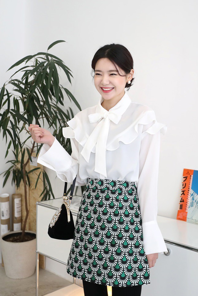 Với những mẫu áo bèo nhún vốn đã khá cầu kì điệu đà, khi mix cùng những trang phục khác bạn nên ưu tiên cho những mẫu váy hay quần đơn giản để tổng thể set đồ gọn gàng, tránh rườm rà. Đơn giản nhất chính là mix áo bèo nhún với quần skinny hay chân váy ôm, bạn có thể sơvin chỉn chu thông thường hoặc phá cách hơn 1 chút bằng cách sơvin thả vạt đằng sau cũng đều đẹp cả.