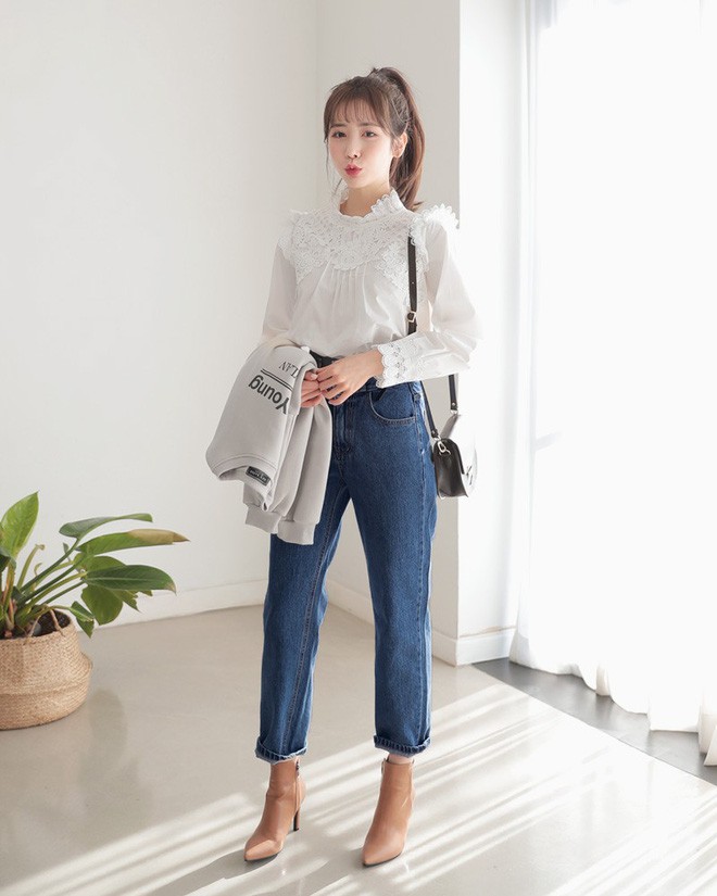 Nếu bạn là 1 cô nàng trung thành với phong cách yểu điệu, nhẹ nhàng vậy thì cách mix áo ren với quần skinny hay chân váy đơn giản sẽ là công thức an toàn mà hợp lý. Còn nếu bạn muốn có thêm sự phá cách, mới lạ cho set đồ vậy thì đừng ngần ngại mix áo ren với các loại quần cách điệu như quần bò ống loe, quần bó xé gấu hay thậm chí là những loại quần nhung, quần dạ đang là mẫu quần "hot" của mùa đông năm nay.