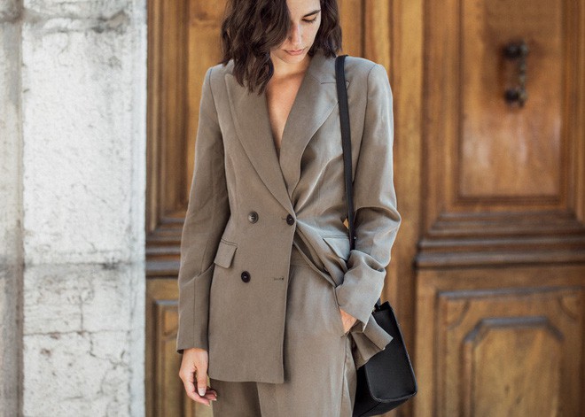 Cùng với tuxedo, áo blazer hai hàng khuy cũng là một dáng áo cơ bản. Thiết kế với điểm nhấn hai hàng khuy có thể là đơn hoặc kép tạo đường nét có phần góc cạnh và cứng cáp hơn những thiết kế cổ điển đơn thuần mang lại một cái nhìn độc, lạ và chất hơn cho trang phục công sở hàng ngày.