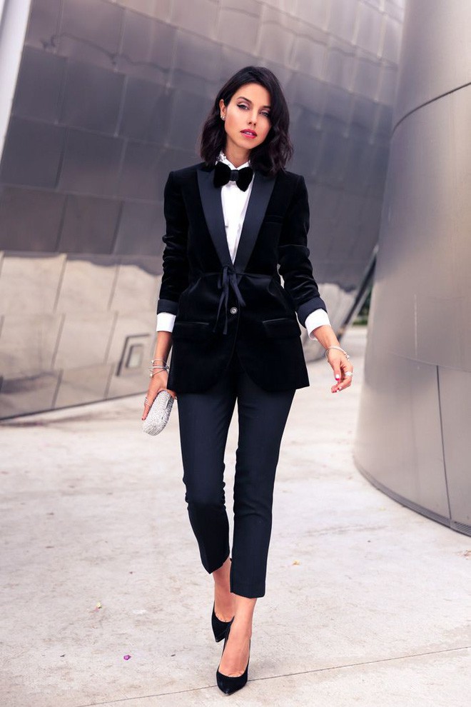 Những thiết kế áo blazer tuxedo không phải là quá xa lạ đối với các tín đồ, nhưng để mà so sánh thì năm nay những thiết kế blazer tuxedo với điểm nhấn phần ve cổ được kết hợp vải bóng như lụa hoặc vải satin lại lên ngôi mạnh mẽ hơn. Không còn là những thiết kế trơn đơn thuần, áo dáng tuxedo hơi dài và chiết eo nhẹ nhàng đủ sức tạo nên nét chấm phá riêng cho trang phục công sở trong mùa mới của các nàng.