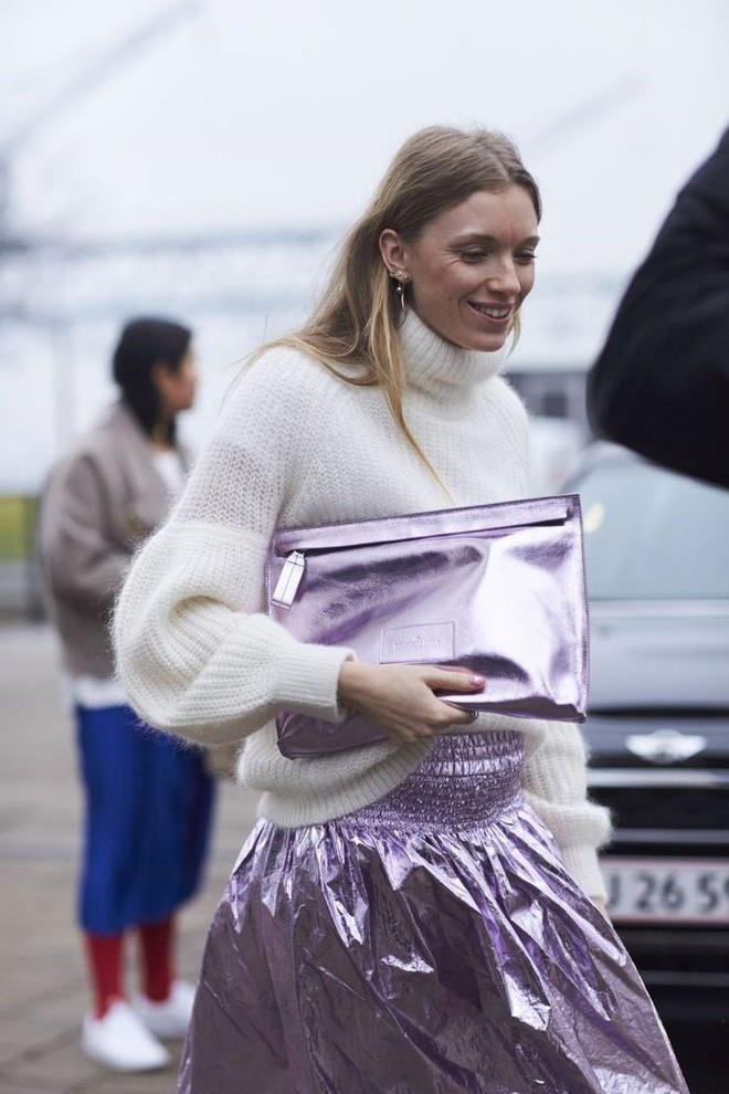 Không chỉ trên sàn diễn thời trang hào nhoáng, màu tím lavender cũng được không ít fashionista ưa chuộng trên những "sàn diễn" thời trang đường phố sôi động. Màu tím được phối hợp nhuần nhuyễn với không ít những kiểu dáng trang phục khác nhau, đem tới những sự kết hợp vô cùng bắt mắt và thú vị.