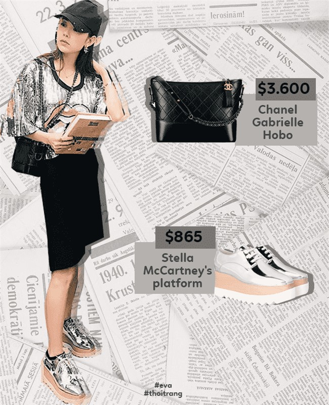 Điểm nhấn đáng trầm trồ trong cây đồ dạo phố của Minh Hằng đó chính là mẫu túi Chanel Gabrielle - món phụ kiện đã khiến hàng loạt tín đồ thời trang thổn thức trong suốt năm 2017 vừa qua. Ngoài ra, mẫu giày bánh mì ánh kim cũng giúp cho người đẹp ăn gian thêm một chút chiều cao cùng làm nổi bật thêm vẻ ngoài năng động.