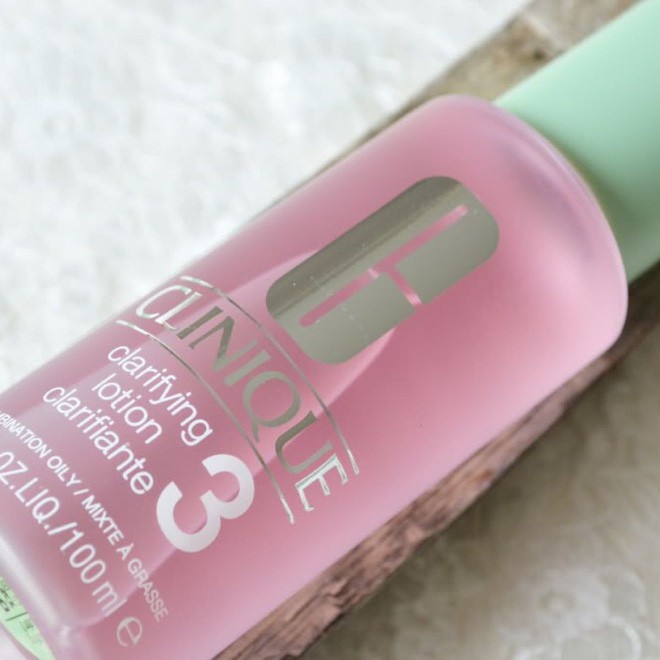 Rửa mặt xong, Ellie sẽ dùng toner để làm sạch kỹ hơn chất bẩn và dầu dư còn sót lại trên da. Sản phẩm mà cô tin tưởng chính là Clinique Clarifying Lotion 3. Sử dụng toner để cân bằng độ ẩm và làm sạch da là bước khá quan trọng mà nhiều người thường bỏ qua vì lười hoặc vì sợ sản phẩm sẽ làm khô da.