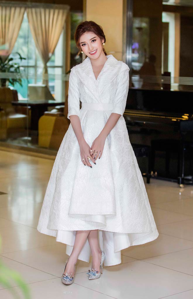 Hiếm lắm mới thấy Huyền My đụng hàng với một Bông hậu khác tại showbiz Việt. Tại một sự kiện gần đây, Huyền My nhẹ nhàng duyên dáng trong một thiết kế váy midi trắng tinh khôi của NTK Lê Thanh Hòa. Và cũng hiếm lắm mới thấy một Huyền My tinh khôi, đơn giản như vậy khi xuất hiện tại các sự kiện giải trí.