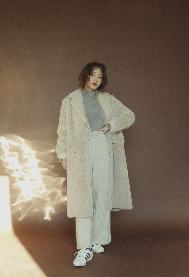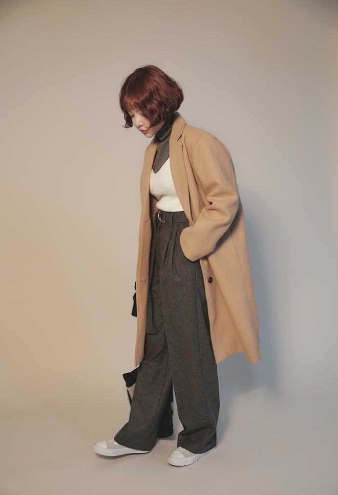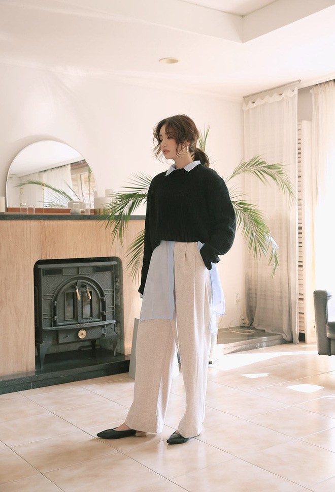 Với quần len ống rộng thế này, cách mix phố biến nhất là với áo len cổ lọ ôm sát hoặc với áo len cổ tròn suông nhẹ phía trong rồi khoác áo dạ dáng dài bên ngoài. Nếu tự tin với khả năng mix đồ của mình, bạn cũng có thể kết hợp thử với áo sơmi oversized bên trong rồi mặc thêm áo len cổ tròn dáng lửng bên ngoài. Một số người còn mặc nguyên set đồ len trắng hoặc màu camel, đúng theo tinh thần monochrome.
