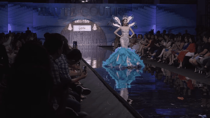 Kỹ thuật xử lý từng bước catwalk di chuyển, điêu luyện ngay cả khi trình diễn những thiết kế cồng kềnh.