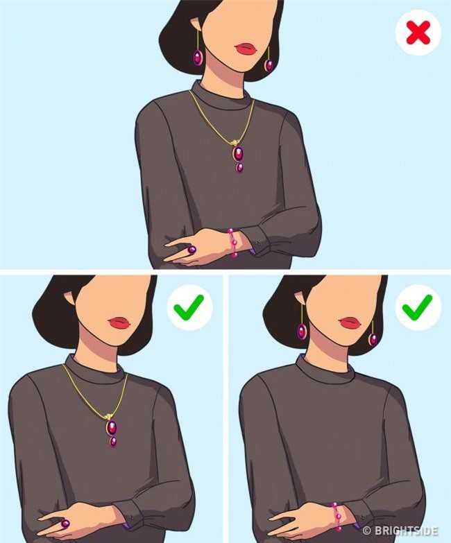 Sử dụng quá nhiều đồ trang sức khi xuất hiện sẽ khiến chị em không hề sang trọng mà còn mang lại phản ứng ngược. Bạn chỉ nên chọn 2 món trang sức để trở nên ấn tượng và tinh tế hơn.