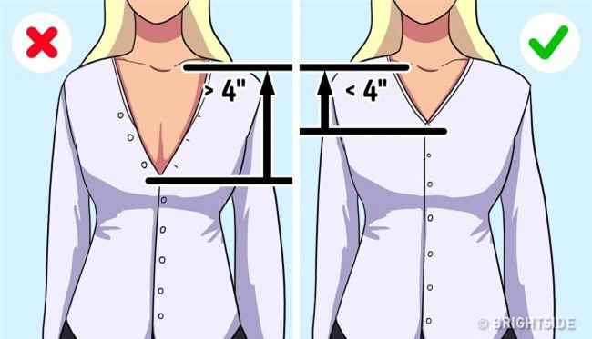 Cổ áo chữ V cũng không nên quá sâu nếu muốn đảm bảo được hình ảnh thanh lịch. Cổ phù hợp với mọi hoàn cảnh không nên xẻ sâu hơn 10 cm tính từ vùng xương đòn.