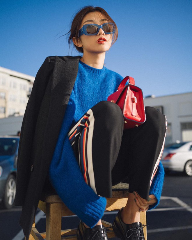 Ngoài đen, đồ đỏ còn còn một người bạn đồng hành tuyệt vời khác, đó là màu xanh dương. Có thể nói, đây cũng là sự kết hợp tương đối thú vị trẻ trung vì đỏ là gam màu nóng còn xanh dương là gam màu lạnh. Khi mix cùng nhau, xanh dương sẽ giảm bớt độ "gắt" của đỏ mà vẫn giúp set đồ của bạn thêm phần nổi bật. Bạn sẽ không hề bị chìm nghỉm giữa đám đông.