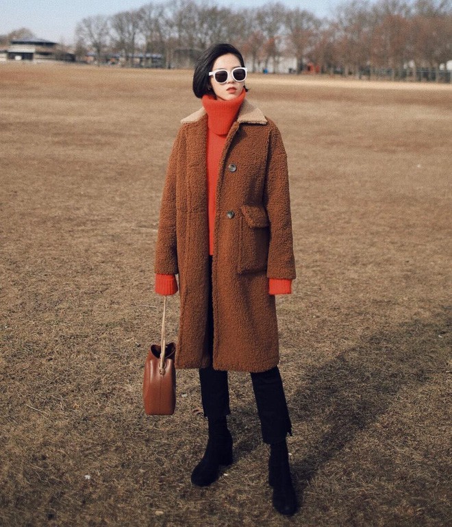 Tết đến, ngoài tông đỏ tươi, đỏ thuần thì đỏ cam cũng được nhiều người săn đón. Đơn giản vì nó không quá "chóe" mà vẫn đủ để khiến bạn thu hút mọi ánh nhìn. Nếu mặc áo len, áo hoodie màu đỏ cam, bạn có thể mix cùng áo khoác màu đen hoặc ghi. Tuy nhiên, nếu muốn theo trend hơn một chút, bạn hãy thử kết hợp với quần áo tông nâu đất hoặc be sáng neutral.