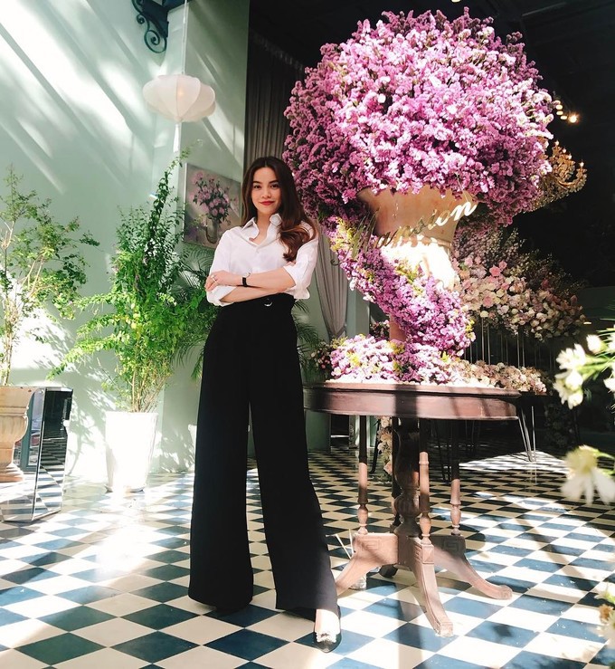Sơ mi trắng là item ai cũng sở hữu ít nhất một chiếc trong tủ, đặc biệt là các chị em công sở. Để không bị chán mắt, đơn điệu bạn hãy thử bắt chước cách mix kiểu áo này từ dàn mỹ nhân Việt. Trong ảnh, ca sĩ Hồ Ngọc Hà sơ vin sơ mi cùng quần ống suông rộng.