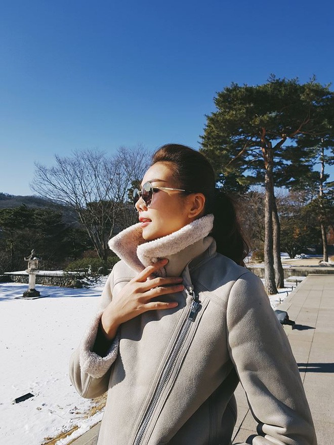 Mặc đủ ấm nên dù thời tiết có lạnh giá thế nào thì nhìn nàng Á hậu của chúng ta vẫn vô cùng rạng rỡ, xinh đẹp.