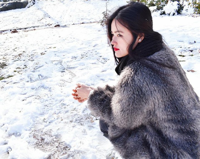 Mặc dù quàng khăn to bản, áo khoác dạ dài nhưng có vẻ như nàng Hậu của chúng ta vẫn phải co ro trước cái lạnh của mùa đông.