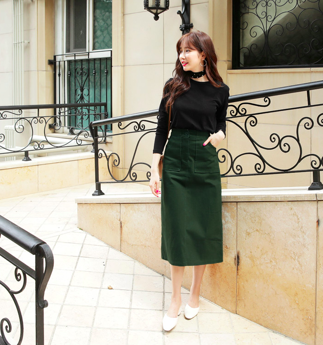 Nếu may mắn sở hữu chiều cao lý tưởng, bạn có thể xem xét chọn chân váy midi, dài qua đầu gối hoặc ngang bắp chân. Ngược lại, nếu tự ti về vóc dáng, chân váy ngắn trên đầu gối chính là sự lựa chọn hoàn hảo dành cho bạn.