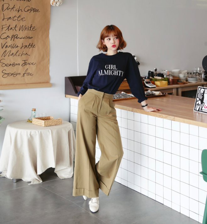 Nếu diện cùng quần ống rộng, tốt nhất nên sơvin gọn gàng với áo phông dài tay đa phần là dáng rộng nếu không sơvin sẽ tạo cảm giác lùng bùng cho cả set đồ.