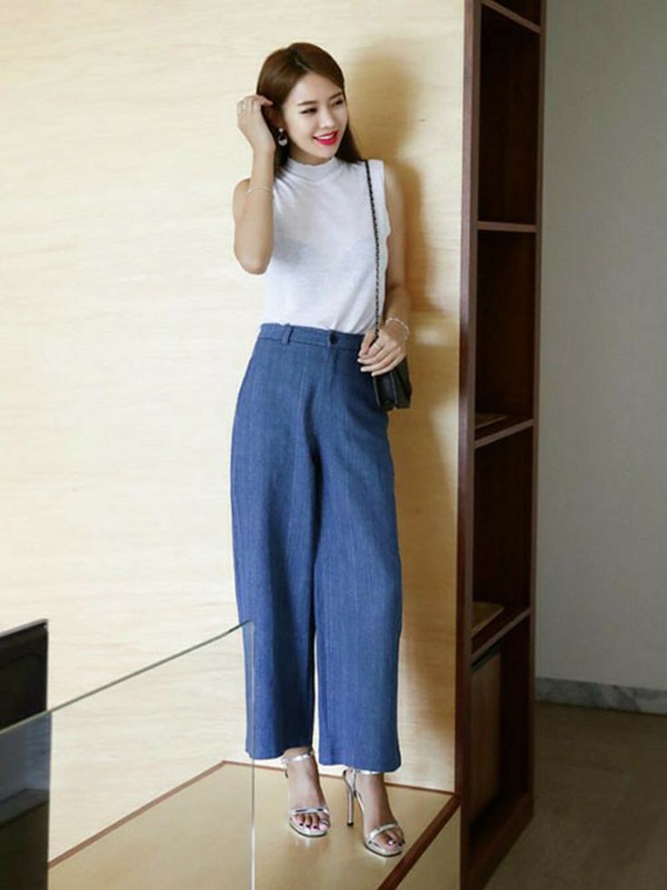 Chiếc quần ống rộng giúp cân bằng vóc dáng, khắc phục sự chênh lệch kích thước giữa phần bắp đùi lớn và cổ chân túp nhỏ.