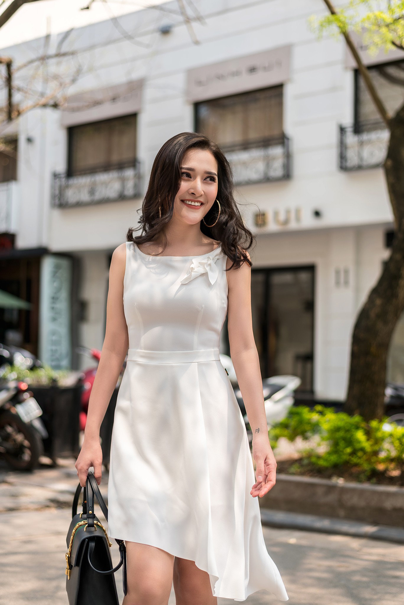 Đôi khi lại là những chiếc đầm liền màu cam đất cô như ngọt ngào hơn hay chiếc đầm trắng như một cô gái đầy sức sống trong nắng mới, hay gợi cảm hơn với chân váy ngắn bước nhanh qua đường chút thôi Lê Thuỳ Linh cũng gây ấn tượng với nàng lúc đó.