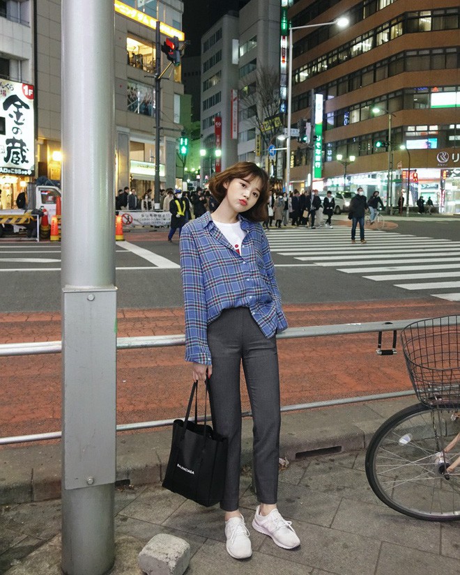 Thêm một cách mix đồ cực hay ho cùng áo phông trắng trơn hay in chữ/hình, là bạn có thể mặc trong áo sơ mi để thả vài cúc trên và sơ vin nửa vạt cùng quần âu hay quần jeans đều đẹp. Với set đồ này, một đôi giày thể thao trắng sẽ giúp bạn trông trendy hơn đấy.