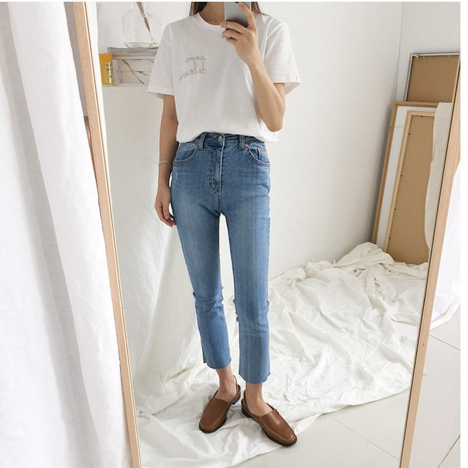 Áo phông và quần jeans - tất nhiên rồi, đây là set đồ cực kỳ đơn giản mà còn dễ mặc, bạn có thể chọn một chiếc áo phông trắng tinh kết hợp cùng quần jeans trơn hay jeans rách, hoặc áo phông in hình/chữ cũng rất hợp mốt đấy nhé. Đừng quên sơ vin để giúp set đồ gọn gàng và chỉn chu.