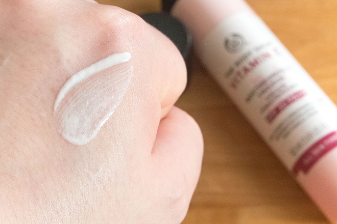 Cũng chính bởi đặc tính dịu nhẹ không gây kích ứng mà vitamin E được sử dụng rất nhiều trong mĩ phẩm, và một trong số đó là sản phẩm kem dưỡng đình đám của The Body Shop mang tên The Body Shop Vitamin E Moisture-Protect Emulsion SPF30 PA+++ ($36.9 – khoảng 840.000 VNĐ). Đây là một loại sữa dưỡng nhẹ dịu, giúp bảo vệ da dưới tác động của ánh nắng mặt trời, thấm nhanh và đồng thời không để lại đốm trắng.