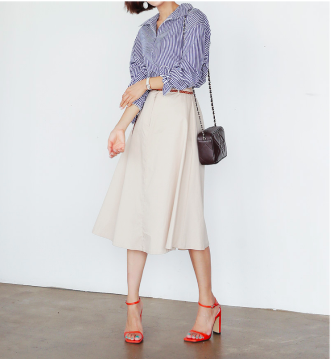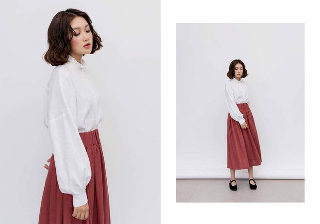 Facile Garment dành tặng các nàng một thiết kế sơmi trắng yêu kiều, nữ tính như tiểu thư đài các. Thiết kế không chỉ điệu đà với chi tiết tay phồng mà còn điểm xuyết thêm phần cổ áo với đường viền xinh xắn. Thiết kế sẽ càng điệu hơn khi các nàng diện cùng chân váy midi như thế này. Mẫu áo có giá 460 ngàn đồng.