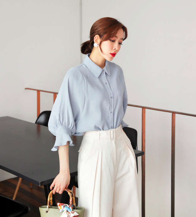 Những dáng sơmi cơ bản vẫn mang lại cho người mặc nét thanh lịch chỉn chu thì các nàng sẽ không thể tìm đâu được cách điệu nào kiêu kỳ, tiểu thư và xinh xắn hơn những thiết kế tay bồng bềnh ngọt ngào này. Không quá bánh bèo, cũng không quá yêu điệu, chỉ cần chi tiết rất nhỏ ở phần tay áo tạo độ bồng xinh xắn là các nàng đã đủ xinh ngất ngây rồi.