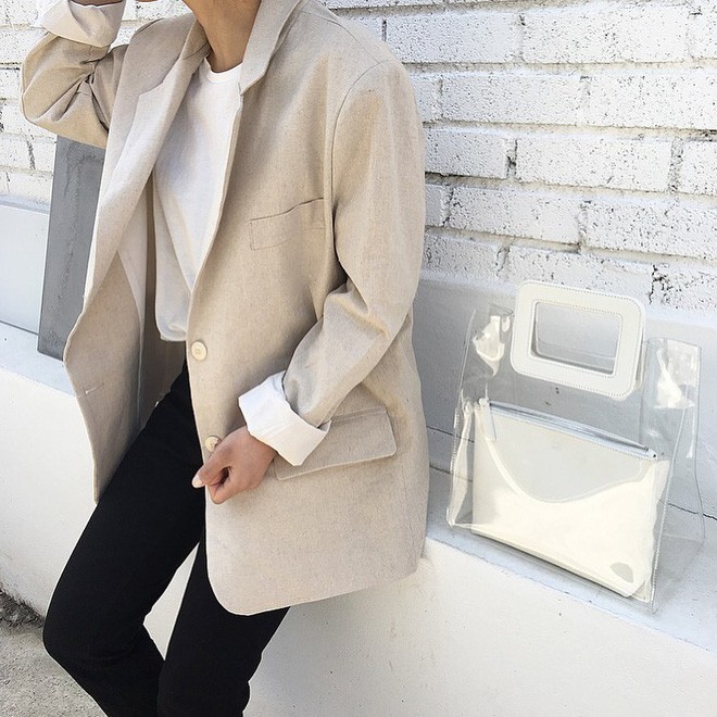Đã có thời túi xách chất liệu plastic PVC lên ngôi: người người, nhà nhà đua nhau sắm sửa. Nhưng bạn cũng biết, thời trang luôn xoay vòng, và cũng tùy phong cách, cách mix-match và gu thẩm mỹ của mỗi người mà các phụ kiện thời trang mùa nào cũng sẽ có đất dụng võ. Túi xách trong suốt, ngoài nhiệm vụ chống thấm nước cực tốt, nó cũng là công cụ khoe khéo các món đồ cá nhân đáng yêu cùng những loại mỹ phẩm ưa thích của bạn.