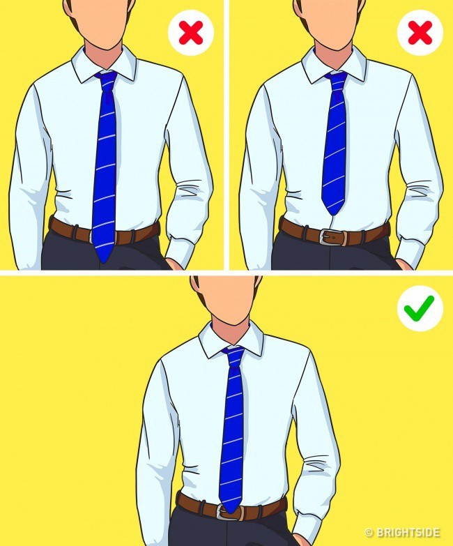 Khi thắt cà vạt, các anh chàng nên để đầu cà vạt dài đến thắt lưng, đừng để ngắn quá hoặc dài quá.