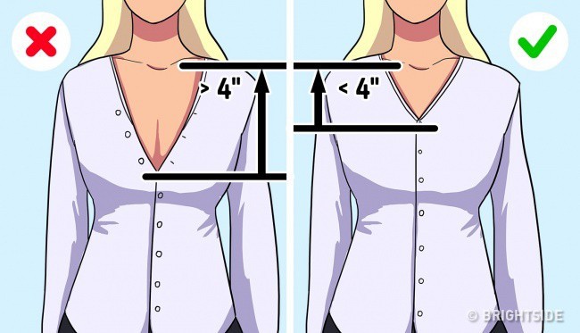 Cổ áo sơ mi công sở không nên xẻ ngực sâu hơn 10cm tính từ xương đòn.