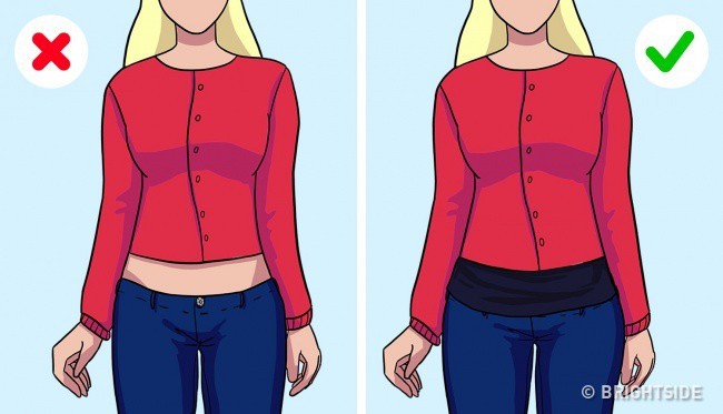 Không nên mặc áo quá ngắn để hở bụng khi mặc quần jean cạp trễ. Bạn có thể mặc một chiếc áo lót dài bên trong.