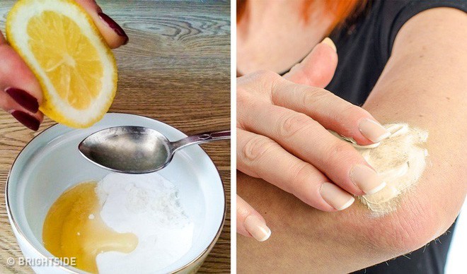 Cách làm: Cắt quả chanh làm đôi. Rắc một thìa baking soda lên bề mặt nửa quả chanh. Sau đó lấy nửa quả chanh đó xoa khuỷu tay và đầu gối trong 1 phút. Để yên trong 15 phút rồi rửa sạch lại bằng nước ấm. Cứ 2 ngày bạn lại làm 1 lần cho đến khi thấy kết quả rõ ràng.