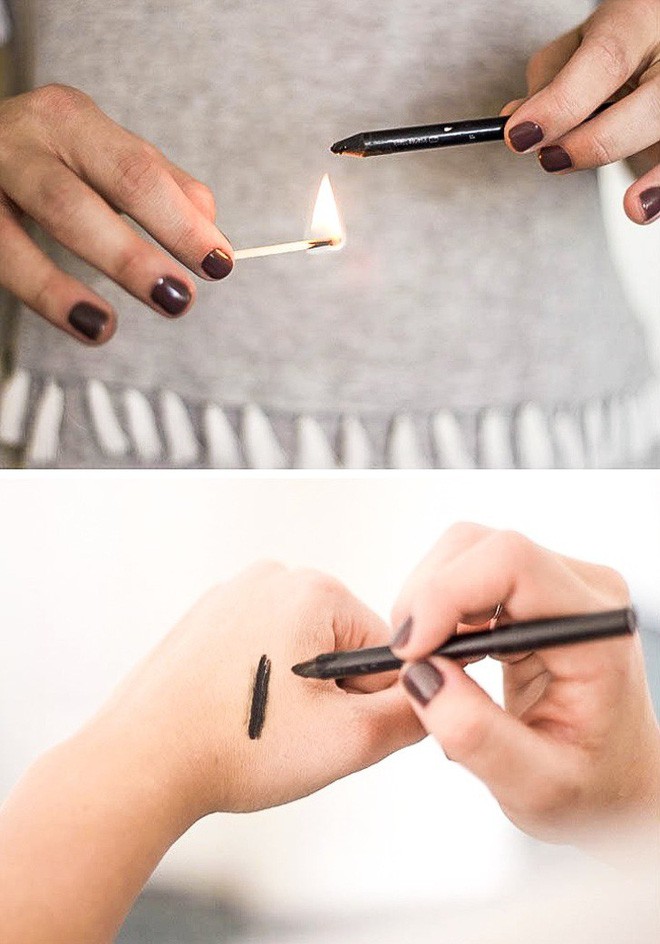 1. Dùng diêm hoặc bật lửa làm nóng đầu bút chì kẻ mắt