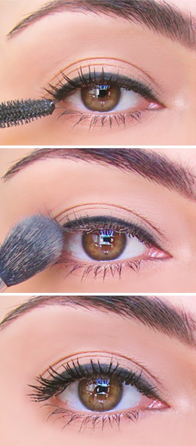 Sau khi đánh mascara lớp đầu tiên, bạn đánh một ít phấn lên lông mi, và sau đó dùng lớp mascara thứ hai. Với cách làm thông minh này, mi mắt bạn trông dày lên trông thấy.