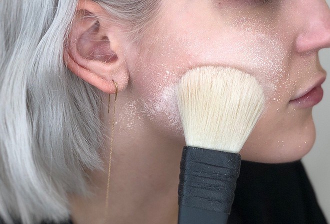 8. Đánh lớp phấn phủ không màu dưới lớp kem nền