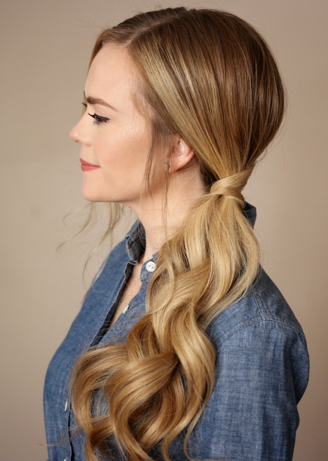 Cũng như mái tóc đuôi ngựa buộc cao, kiểu tóc này đòi hỏi bạn phải mất thêm chút thời gian để tết gọn phần tóc đã buộc lại. Đây là kiểu tóc hợp với những nàng bánh bèo, yêu thích sự điệu đà, nhẹ nhàng.